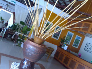 Kami semua 'check in' dan memasuki bilik masing-masing. Namun sebelum itu kami diminta untuk berkumpul jam 4.30 petang untuk satu lawatan ke kampung orang asli dengan dipandu oleh seorang pemandu pelancong, lupe pulak namanya...tapi anda semua boleh cari namanya di facebook iaitu 'Atan Umbut Tarmizi', agaknyalah....aku pun belum cari lagi..